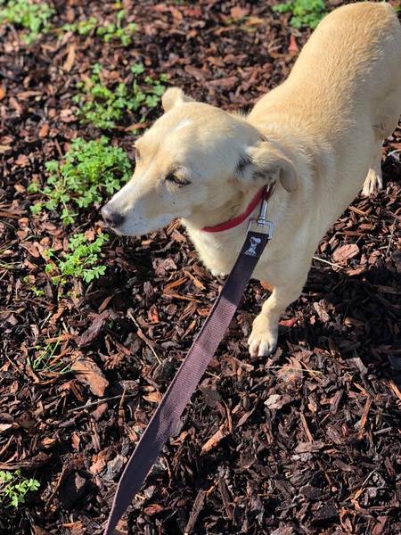 geht gut an der Leine, fährt gut im Auto mit.