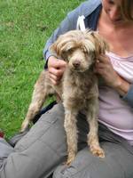 Cristo, unser Spaßkeks, ist ein Puli (-Mix) der dringend seinen Frisörtermin am 09.02.12 wahrnehmen muss. Das Mix haben wir in Klammer gesetzt da er auch reinrassig sein könnte. Cristo ist 09/2010 geboren und hat eine Schulterhöhe von ca. 45,0 cm. Auf jeden Fall werden Bilder nach dem Frisörbesuch folgen. Cristo wurde in der Nähe einer Autobahn gefunden und wir gehen davon aus, dass er auch dort ausgesetzt wurde. Er lief ganz verwirrt in Richtung Fahrbahn aber Gott sei Dank wurde er noch rechtzeitig eingefangen. Sein Fell ist in einem sehr schlimmen Zustand das da dringend was gemacht werden muss. Pflegefrauchen Angelika wird ihm die Pfote dabei halten. Cristo ist ein sehr lieber und freundlicher Kerl der auch mit den anderen Hunden in der Pflegestelle gut klar kommt. Auch mit Menschen hat Cristo keinerlei Probleme. Er ist kastriert, geimpft, gechipt und entwurmt. Jetzt fehlt ihm zum großen Glück nur noch ein eigenes Zuhause.