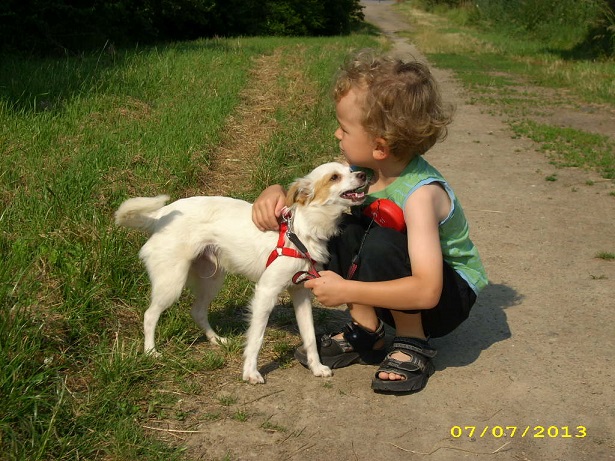 Luca versteht sich prima mit anderen Hunden, ist katzenverträglich und kinderlieb.